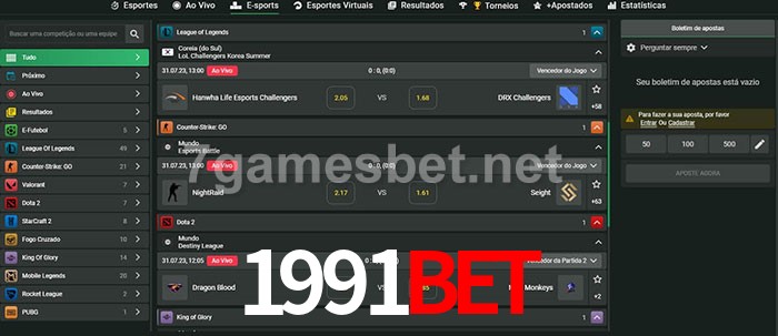 A aposta 1991Bet oferece aos jogadores a experiência mais conveniente de apostas em eSports!